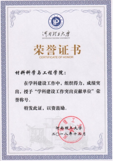 12月5日,学校召开学科与学位点建设工作会议。会议表彰了学校优秀学科和学科建设工作突出单位。材料科学与工程学科荣获学校优秀学科,学院由于学科建设工作成绩突出,被授予“学科建设工作突出贡献单位”荣誉称号。