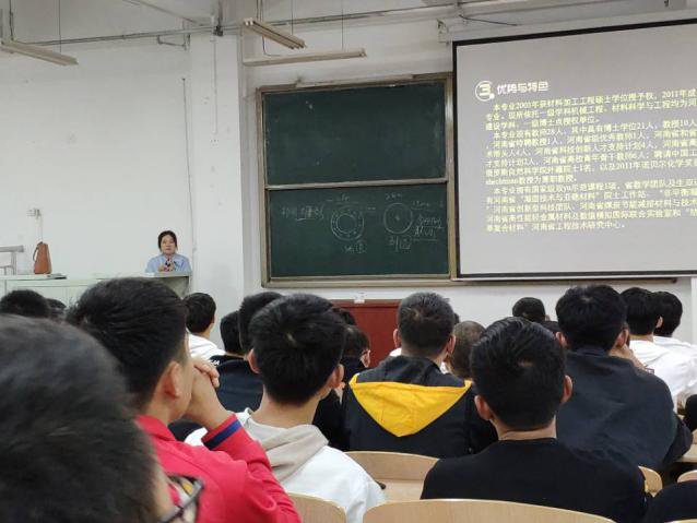 四位教师从学院发展历程、专业发展趋势、研究成果介绍开始,详细介绍了本院的学科建设情况和师资队伍建设情况。结合本专业培养方案讲解培养目标及毕业要求,让同学们对如何正确选课、专业方向选择及如何掌握专业学习方法有了良好的认知,并详细分析了材料科学与工程(包括:无机非金属材料、高分子材料、金属材料)、材料化学、新能源与器件、材料成型及控制工程四个专业学生毕业后的就业去向与就业优势。在讲座过程中,四位教师鼓励19级学生在努力学好专业课的同时,增强创新创业方面意识,加大对其他课程的学习,打好专业基础,学有余力的同学可以考虑双学位,激励19级新生明确学习目标、确定人生方向、合理分配时间、积极主动的投入到学习生活中,并提醒同学们在就业与考研的问题上早思考、早准备,未来一切都有可能,不能满足于目前当前,要有终身学习的能力,才能在未来工作中应付自如。讲座结束后,四位教师分别就课程设置、考研等方面与同学们进行了互动交流。