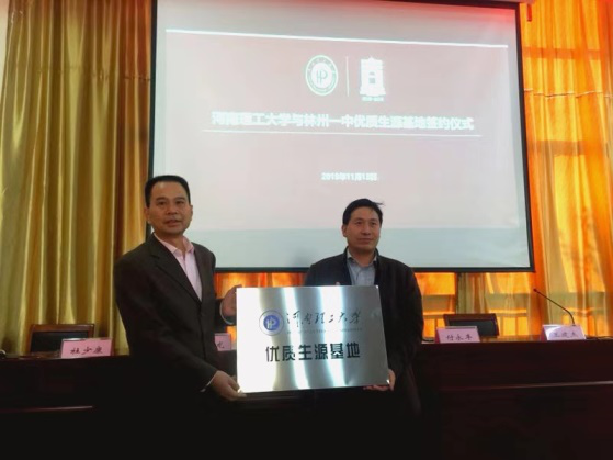 2019年11月13日下午,河南理工大学优质生源基地签约授牌仪式在林州一中办公楼一楼会议室举行。河南理工大学材料学院党委副书记张建新,材料学院学工办副主任王昭龙,材料学院专职辅导员杜少康等一行3人,林州一中副校长付永丰、教导处主任王建杰及高三学生参加了签约授牌仪式。
