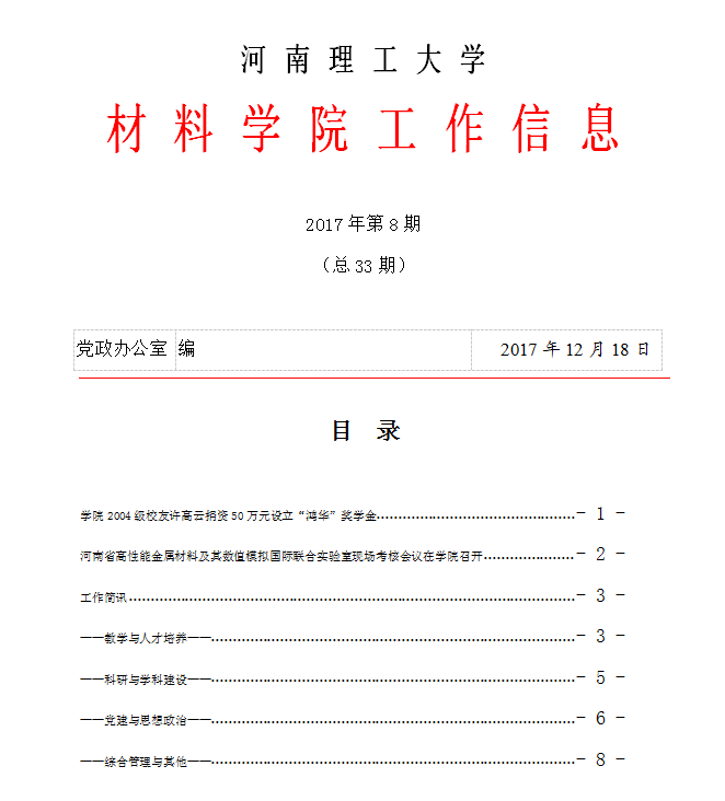 材料学院工作信息(2017年第8期,总33期)