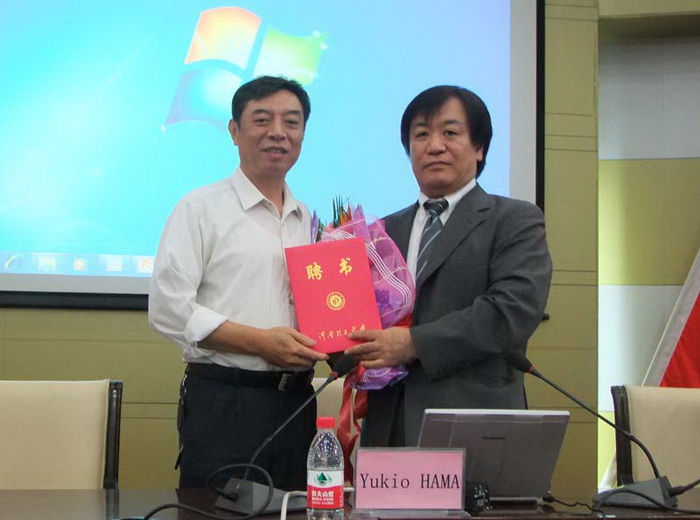 报告会前,校长助理丁安民为Yukio HAMA教授颁发聘书,聘请Yukio HAMA教授为我校兼职教授。
