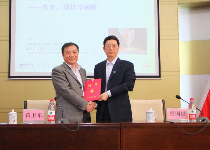 为增强学术氛围,推进学术交流,10月24日下午,西北工业大学凝固技术国家重点实验室主任黄卫东应邀莅临我院,在圆形报告厅做了题为《增材制造(3D打印)技术—历史、现状与前瞻》的学术报告,副校长景国勋为其颁发了河南理工大学兼职教授证书。报告会由材料学院院长管学茂主持,院士傅恒志及学校相关专业的老师和学生聆听了报告。