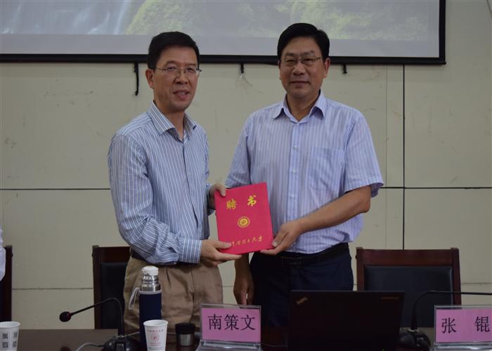 6月15号下午,中国科学院院士、清华大学材料科学与工程学院教授南策文受聘为我校特聘教授仪式暨学术报告在工商管理学院MBA学术报告厅举行。副校长张琨出席并代表学校为南策文教授颁发聘书。材料科学与工程学院院长管学茂主持报告会,该院400余名师生聆听了报告。