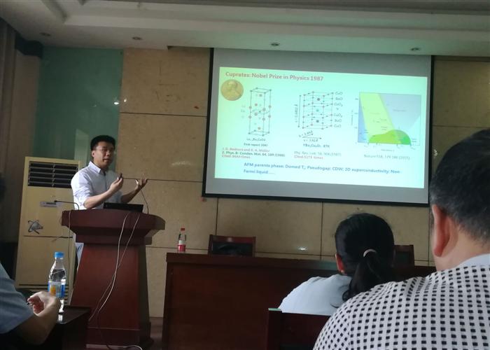 报告中,郭建刚从超导材料的研究历史出发,回顾了超导材料的发展历程,结合我国在超导材料研究领域的研究实际,分析了国内超导材料研究的问题与挑战,重点介绍了层状超导材料的晶体结构和超导物性两个方面的研究成果,让与会师生对国内超导领域的发展有了整体的了解。报告结束后,郭建刚详细地回答了在场师生的问题和科研疑惑。作为国内超导材料研究领域非常活跃的研究团队之一,郭建刚研究员团队在超导材料探索和物性表征等方面取得了丰硕的成果,他的精彩报告为我校在超导材料相关研究方面拓展了思路。
