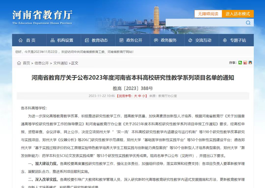 近日,河南省教育厅公布了关于河南省本科高校研究型教学系列项目立项建设名单,我院曹新鑫老师的高分子材料课程正式获批立项建设。