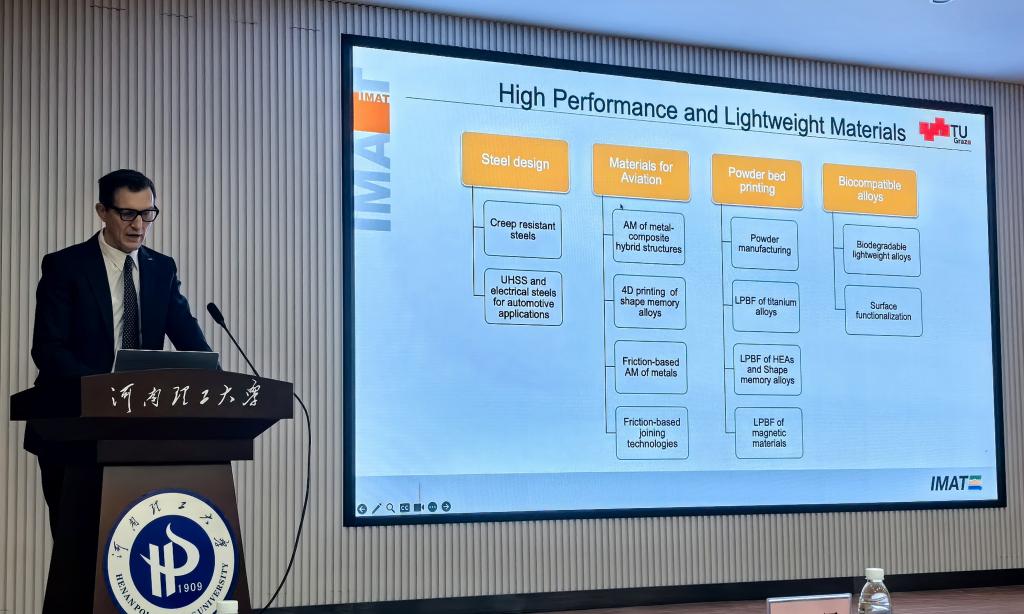 11月19日至22日,应材料学院与河南省高性能轻金属及其数值模拟国际联合实验室(以下简称国际联合实验室)共同邀请,奥地利格拉茨技术大学材料科学与焊接成型学院院长绍默茨、生产工程学院院长哈斯来校开展国际合作交流。