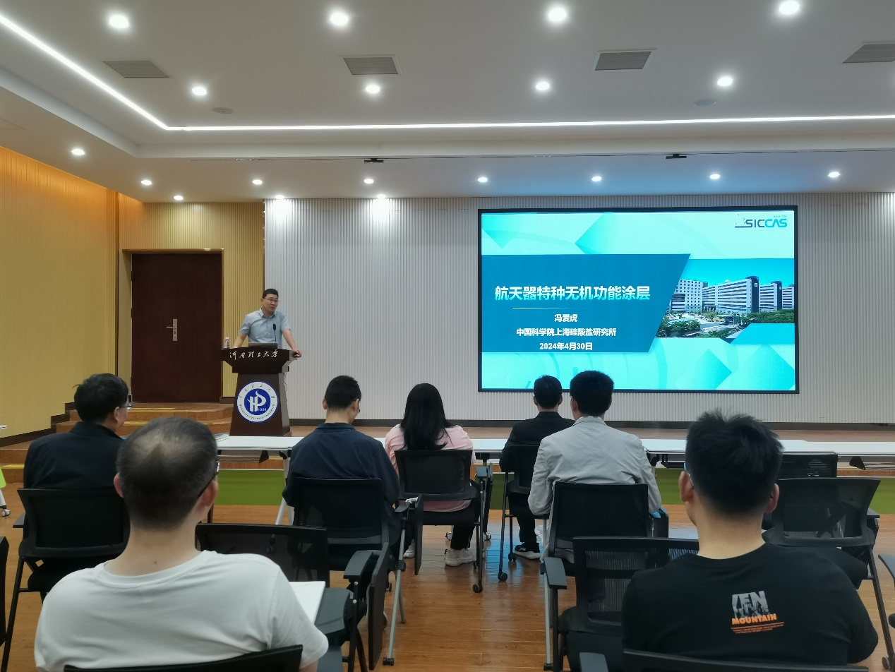 4月30日上午,中国科学院上海硅酸盐研究所副研究员冯爱虎应邀在材料学院2103报告厅,为材料学院师生作题为《杂散光抑制-污染物吸附双功能航天器涂层》的学术报告。相关方向教师、研究生和本科生参加了报告会。