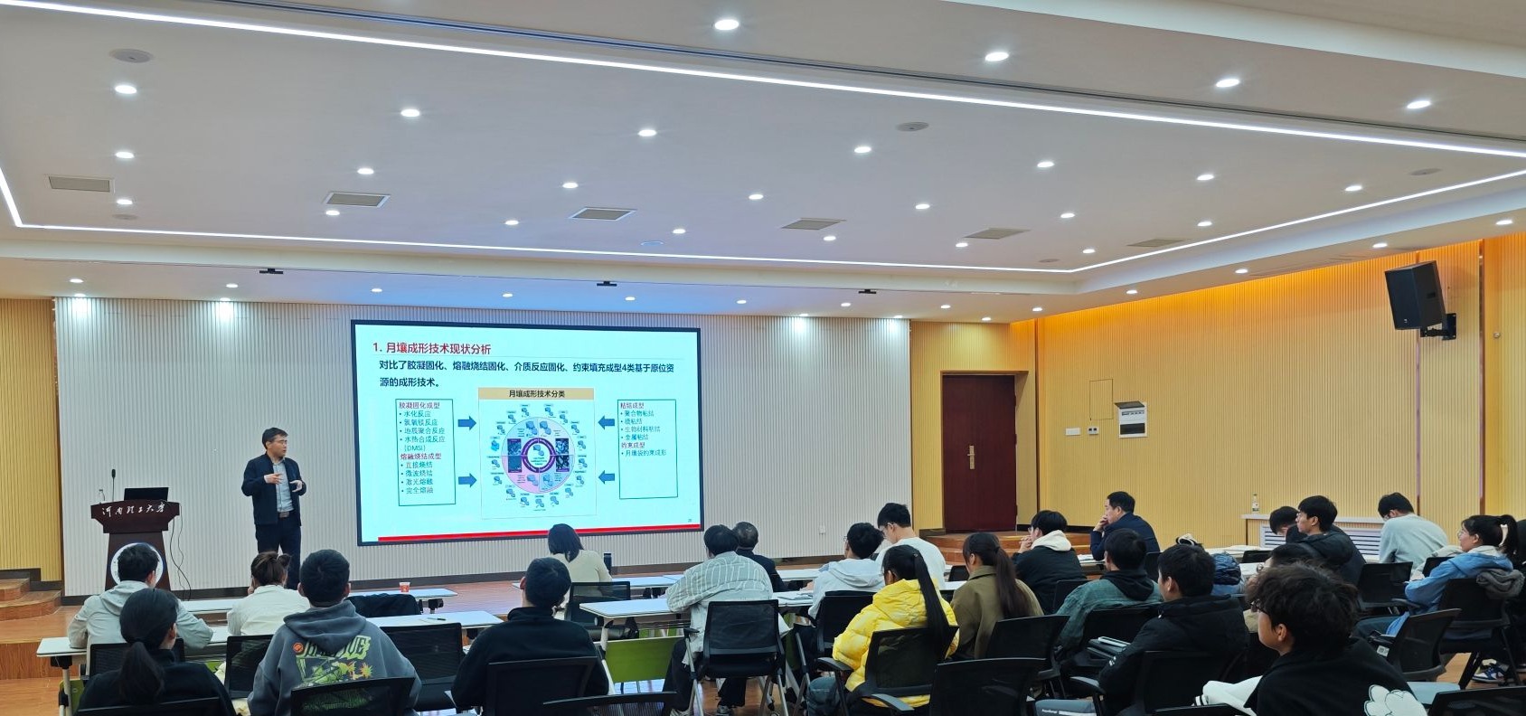 11月24日下午,材料学院邀请中国建材科学研究总院教授级高工吴浩到材料学院2103,作题为《面向月球科研站建造的原位资源利用与环境模拟研究进展》的学术报告。报告由副院长王雨利主持,相关专业教师和研究生和参加了报告会。