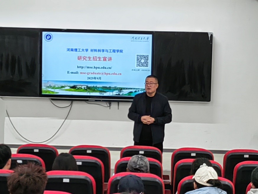 宣讲会上,王彬彬系统介绍了河南理工大学及材料科学与工程学院的学科优势和研究生招生政策,并对学院的专业设置与各专业培养目标进行了系统阐述。随后,曹新鑫细致解读了2026年研究生招生专业目录、考试科目及招生名额,结合往年数据分析报考趋势,给出针对性选报建议。同时,还围绕专业课复习技巧、公共课备考规划、复试核心要点等,分享科学备考方法,鼓励同学们尽早准备、夯实基础。