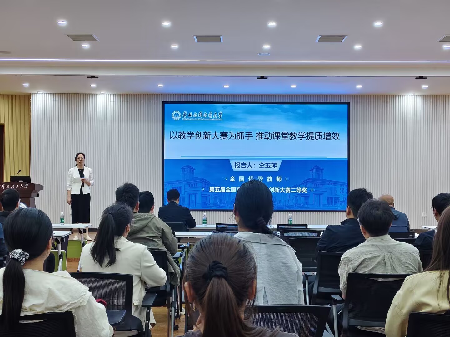 4月16日下午,华北水利水电大学仝玉萍教授应邀莅临材料学院,在2103多功能报告厅作题为《以教学创新大赛为抓手,推动课堂教学提质增效》的报告。报告由院长朱建平主持,各系负责人、骨干教师及近5年新进教师参加了报告会。 本次报告聚焦高校教学创新实践与学科竞赛组织两大核心板块,围绕教学创新核心议题展开深度研讨。报告会上,仝玉萍结合丰富的教学改革与赛事指导经验,深入阐释了教学创新的核心要义,并系统梳理了课程在人才培养中的关键作用以及教师的教学引领价值,为学院厘清教学创新逻辑提供了清晰框架。针对教学创新大赛筹备方面,她从赛事重要性、赛制赛道规划、过往赛事经验等维度进行解读,为参赛团队提供了实操指引。最后,她与一些教师代表进行了互动交流,就教学设计细节、创新亮点提炼、赛事答辩技巧等问题逐一给与了耐心、细致的解答。 仝玉萍,华北水利水电大学教授,博士生导师,全国优秀教师,教育部材料类教学指导委员会委员,获得第五届全国高校教师教学创新大赛二等奖、首届全国高校教师教学创新大赛三等奖。主要从事功能纳米材料的低能耗合成及性能研究、固体废弃物资源化利用,主持国家自然科学基金、省自然科学基金、省科技厅项目等纵横向课题 11 项。在权威期刊及国家一级期刊发表论文 45 篇,授权国家发明专利 12 项,出版专著 2 部,主编教材 2 部,获得省科技进步奖等科技奖励多项。 |