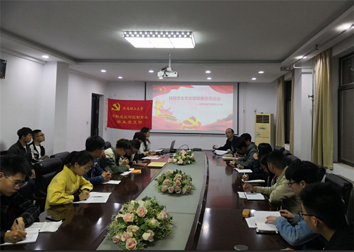 2019年4月4日,材控学生党支部在2206讨论了范家琪、王进才等21位积极分子的发展,并学习了2019全国两会精神,第26次全国高校党建工作会议精神,习近平总书记在学校思想政治理论课教师座谈会上的重要讲话精神。