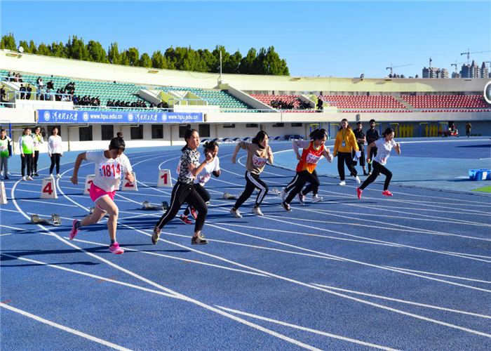 10月27日上午,河南理工大学2018级新生运动会女子组100米决赛在东区田径场举行,我院学生韩春红、张苗苗、单一婷参加了此项赛事。