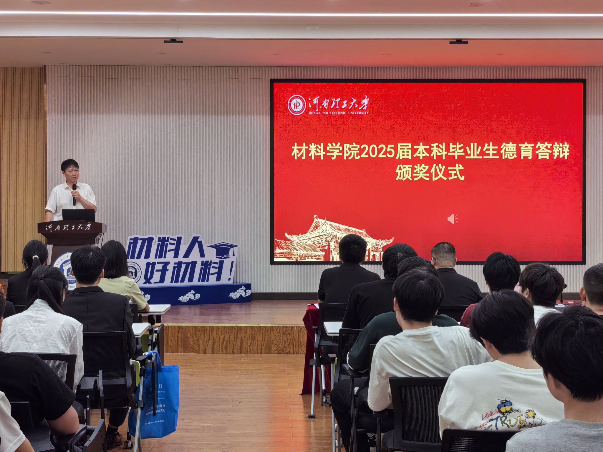 为持续提升学生思想道德素养,切实深化落实立德树人根本任务,5月20日下午,学院在院楼2103多功能厅举行2025届毕业生德育答辩。出席答辩会的评委有院党委书记杜泽兵、副书记杜小保、副院长曹新鑫、新能源系主任王彬彬和智材系副主任张博文,12名2025届毕业生代表参加答辩。活动由彭欣同学主持。学院各年级学生代表旁听答辩。