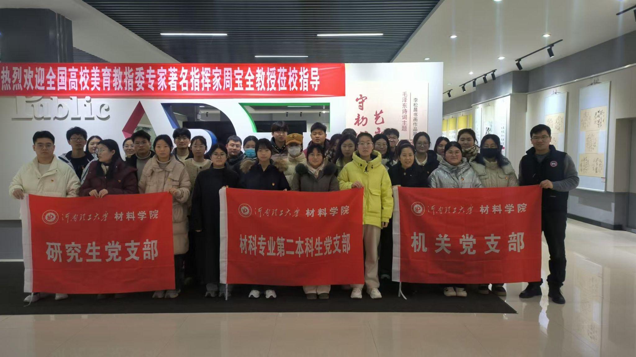 1月3日下午,学院机关党支部、材科专业第二本科生党支部和研究生党支部开展支部共建活动,来自3个党支部的党员同志们共同参观了“守初心 艺永恒”毛泽东诗词主题李松晨书画作品展。 观展过程中,各支部的党员同志们近距离欣赏由李松晨先生创作的以毛泽东诗词为主题的书画作品。这些作品不仅展现了李松晨先生的艺术才华,也反映了他对毛泽东诗词中蕴含的爱国情怀和坚定信念的理解。毛体书法章法纵横驰骋,笔墨潇洒淋漓,字里行间充满雄才大略,折射着毛泽东的豪迈情怀和波澜壮阔的人生。李松晨先生将毛体书法布局严谨、浑然天成、遒劲刚健、纵逸奔放的特点展现得淋漓尽致,其中《七律•长征》《沁园春•雪》等作品,书体形态大气磅礴,整体苍劲有力,书作气贯长虹,通过笔墨传达出了书写内容的精神内涵。 通过参展,支部成员进一步学习了毛泽东思想的精神内涵,同时,提升了支部成员的美育素养和文化素养,增强了对中华优秀传统文化的认同感和自豪感。 据悉,本次展览由中国书画收藏家协会、河南理工大学教务处和焦作市老年书画研究会共同主办,展览时间为2024年12月23日至2025年1月5日。 |