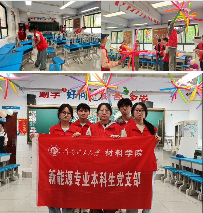 5月30日中午,我院新能源专业本科生党支部创新志愿服务形式,组织5名党员志愿者利用午休时间,与附属小学一年级(3)班班主任老师密切配合,共同为孩子们准备了一份特别的儿童节惊喜。