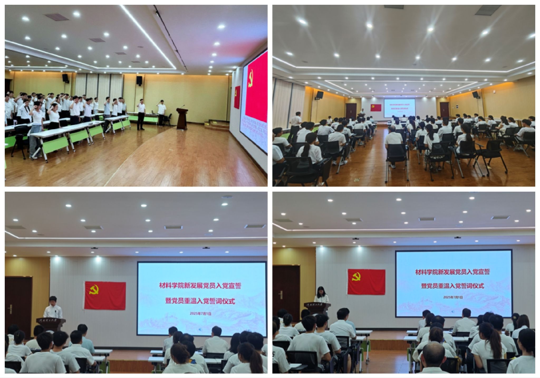 7月1日上午,在中国共产党成立104周年之际,材料学院党委在2103室隆重举行新发展党员入党宣誓暨老党员重温入党誓词仪式。学院党委委员、党支部书记、教师代表、新发展党员及老党员代表参加活动。仪式有学院党委副书记杜小保主持。