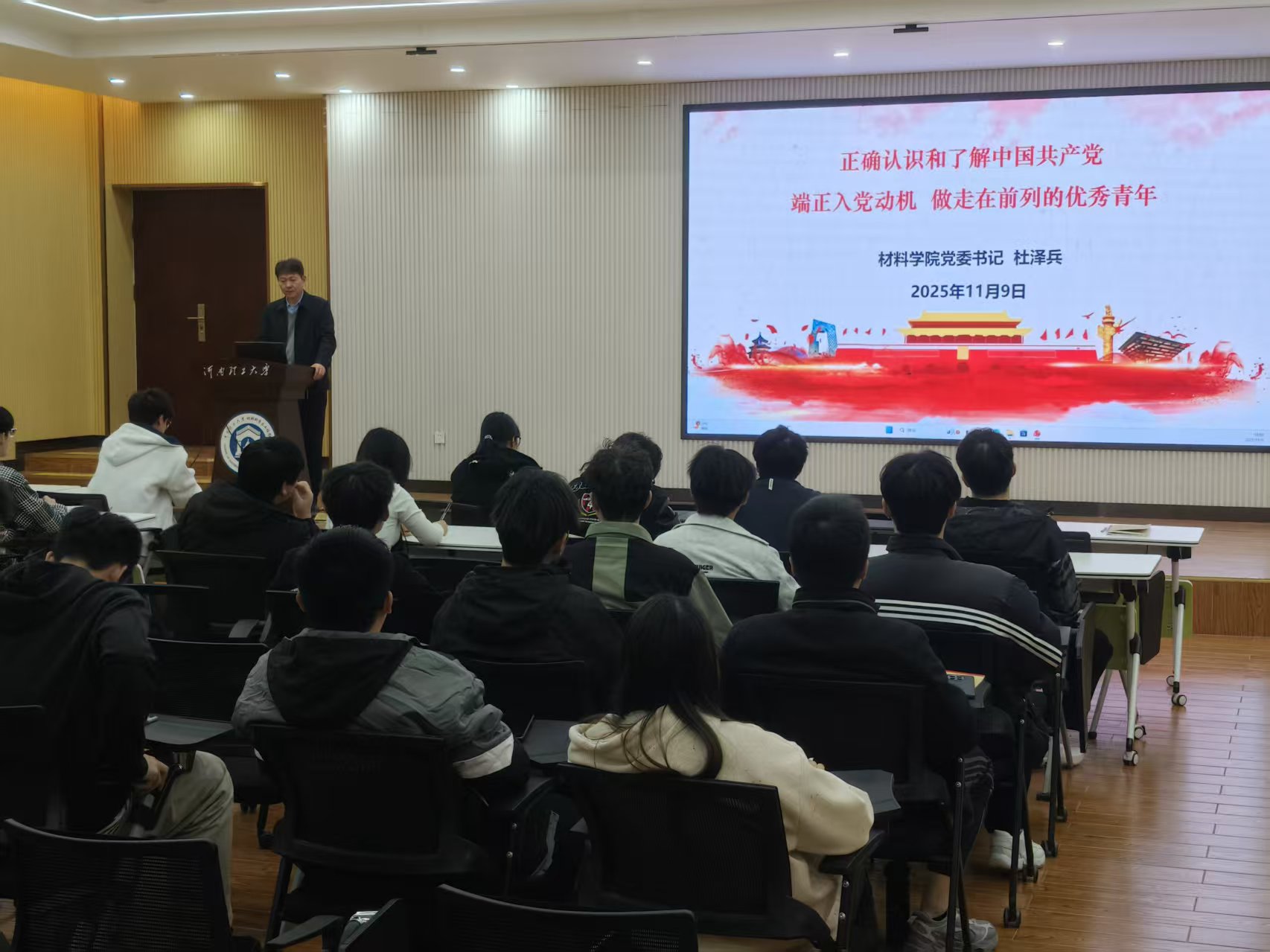 为了引导入党积极分子深化对党的认识,筑牢信仰根基,11月9日,我院党委书记杜泽兵院在院楼2103教室为入党积极分子讲授主题党课。