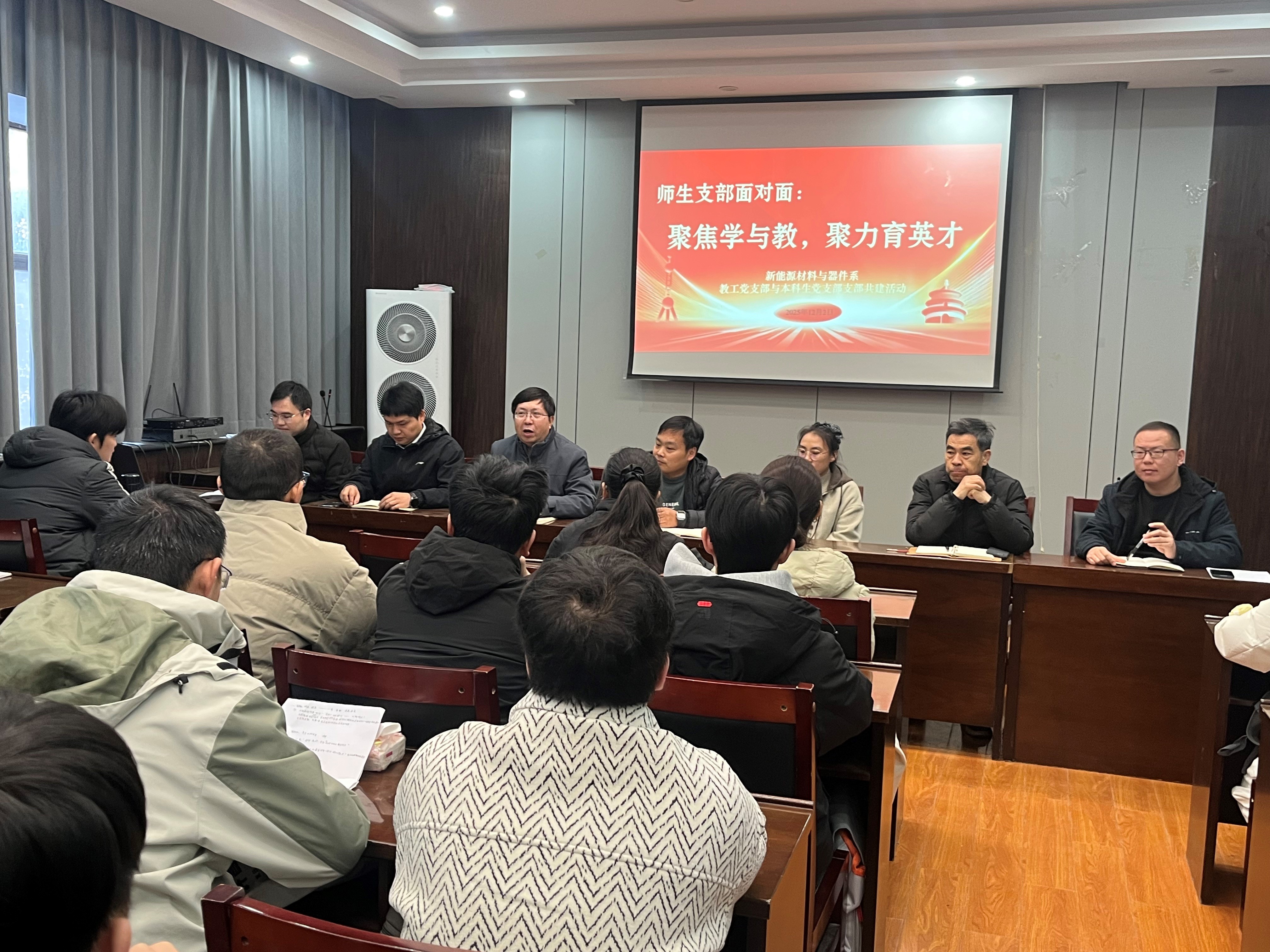 12月2日上午,材料学院新能源材料与器件系党支部与新能源材料与器件专业本科生党支部在学院 1203 会议室成功开展支部共建活动。此次活动以“师生支部面对面:聚焦学与教,聚力育英才”为主题,标志着两支部在党建引领下的深度合作迈上新台阶。